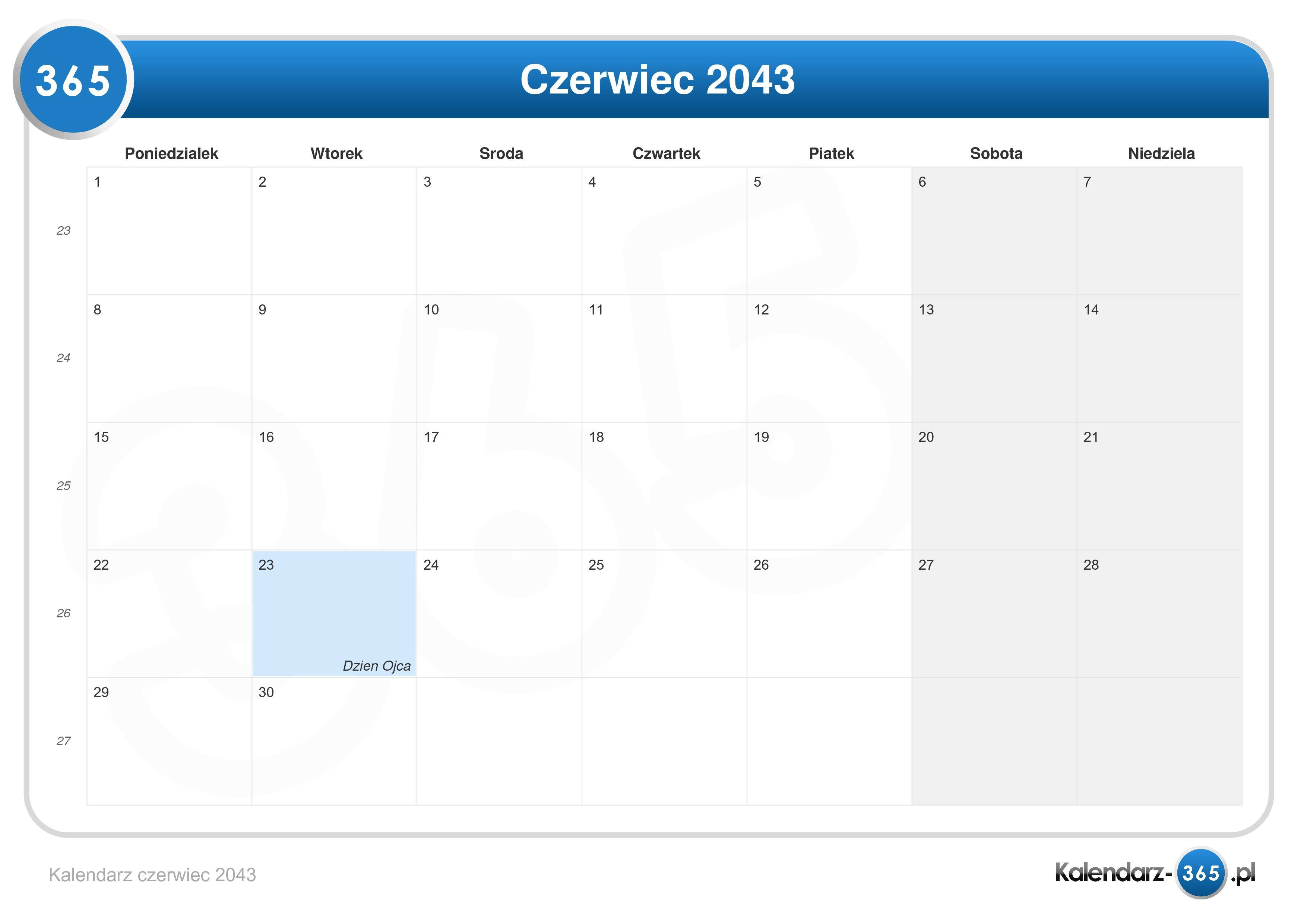 Kalendarz czerwiec 2043 (Format leżący)Przejdź do Kalendarz 2043.