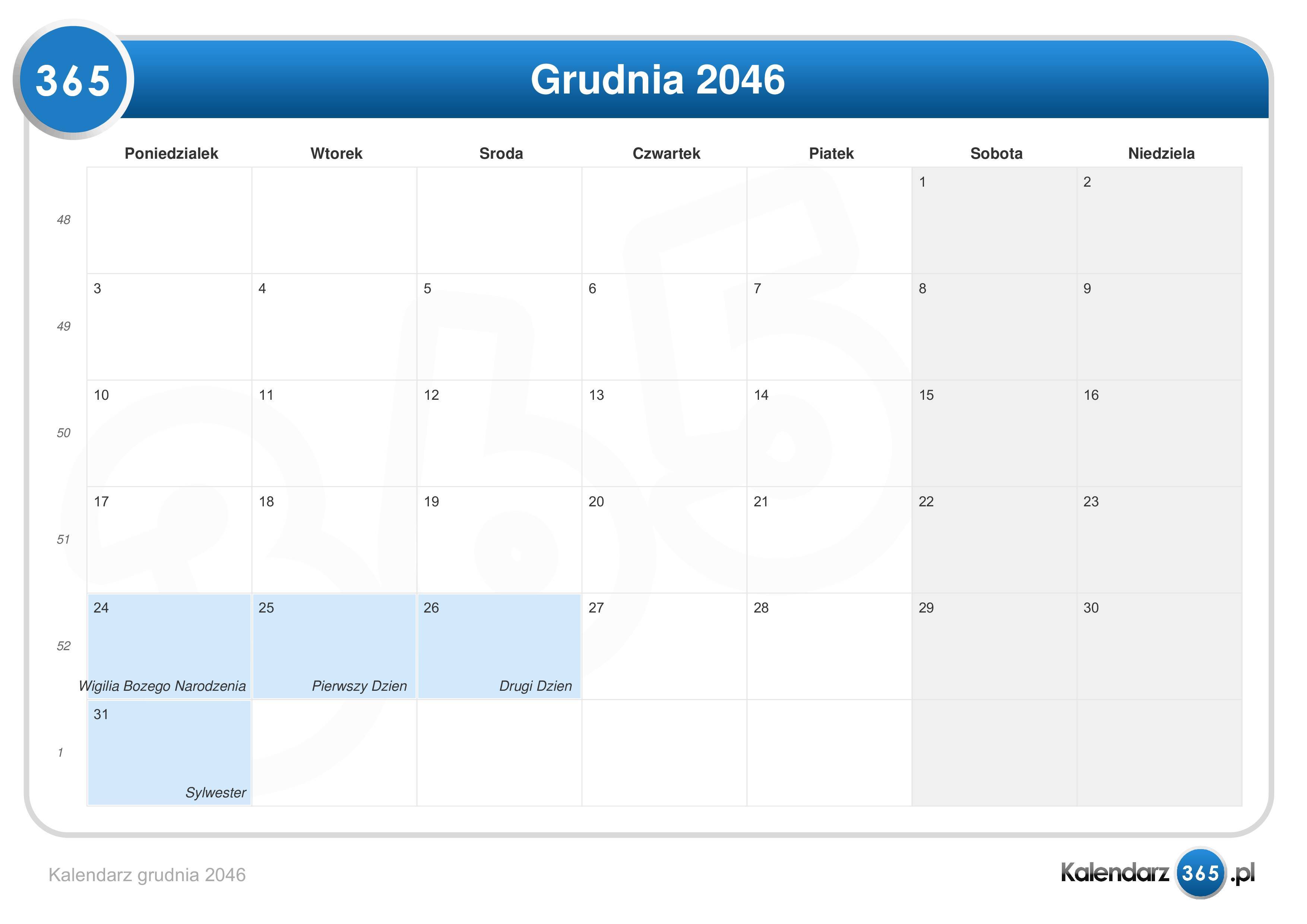 Kalendarz grudnia 2046