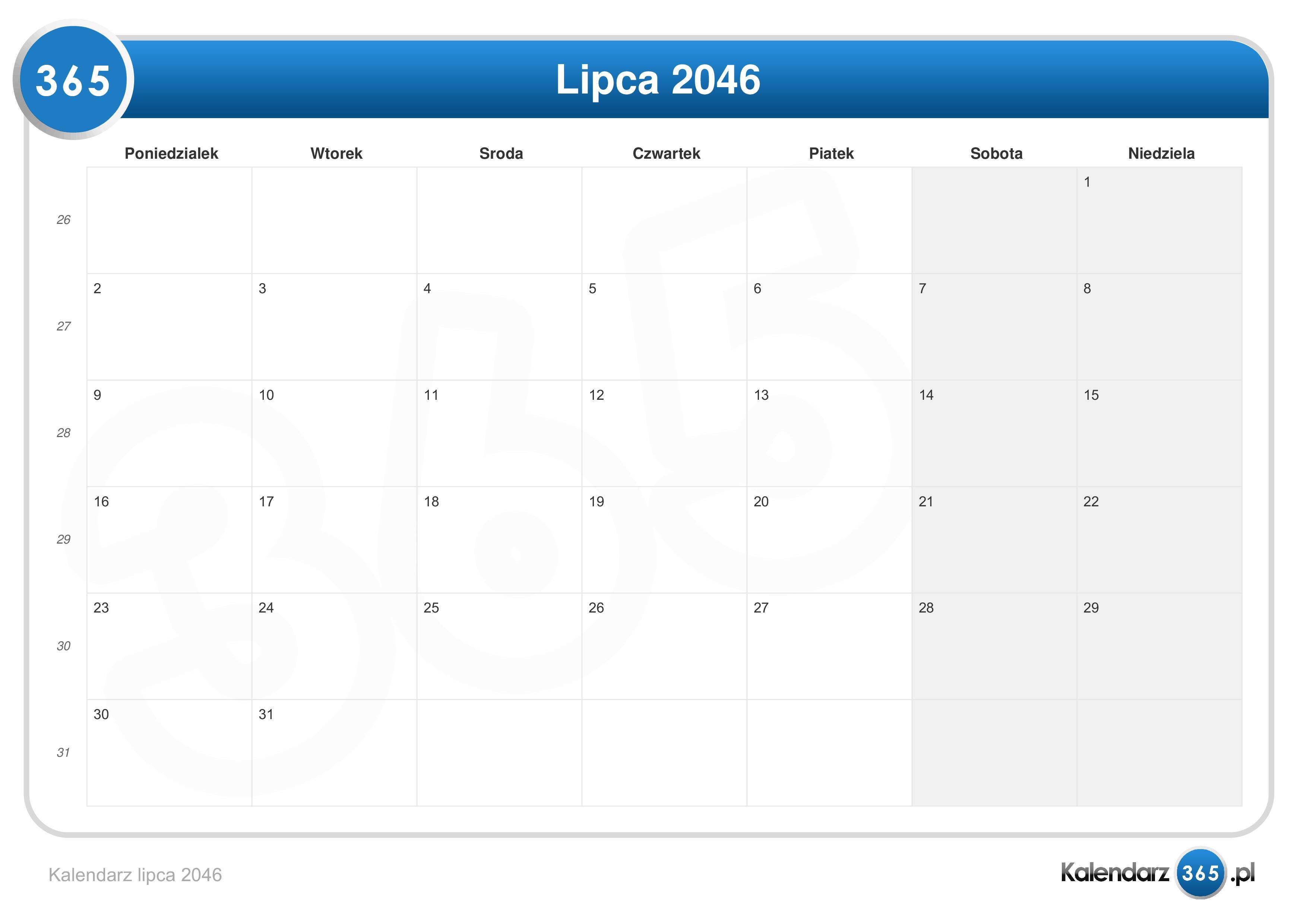 Kalendarz lipca 2046 (Format leżący)Przejdź do Kalendarz 2046.